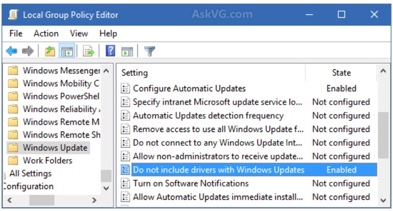 3. In right-side pane, look for "Do not include drivers with Windows Updates" option.