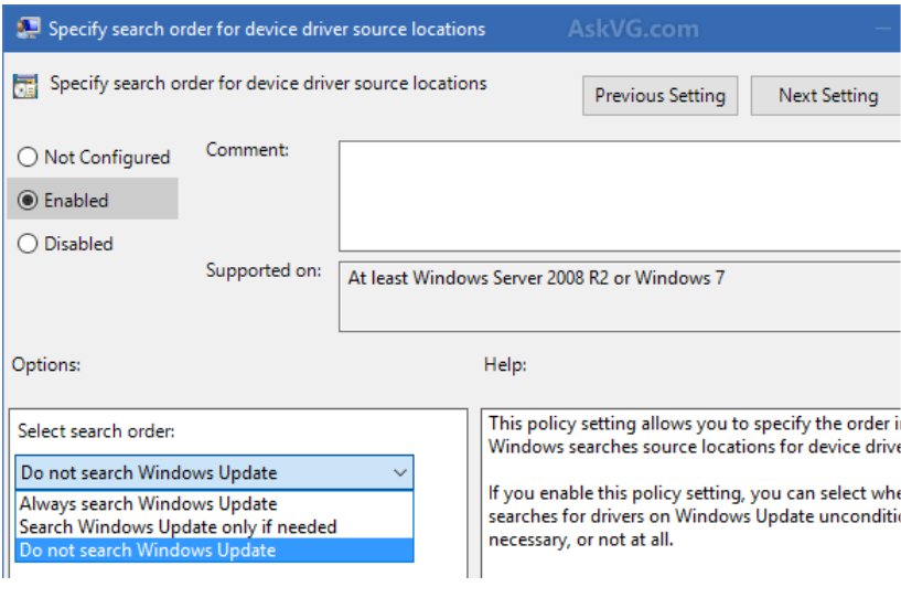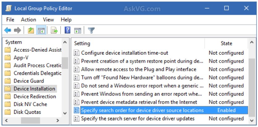 6. In right-side pane, look for "Specify search order for device driver source locations" option.