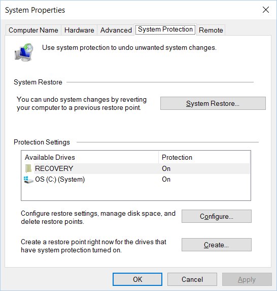 In the area of Protection Settings if the Protection is turned off Highlight the entry and select configure.